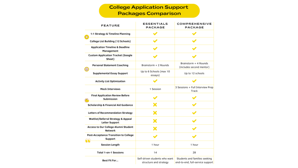 We consult with students to understand their interests and goals, and work together to help create a comprehensive profile building plan.